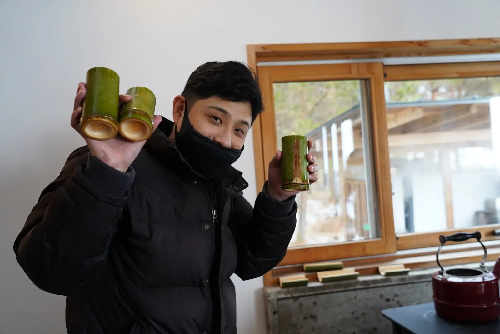モデルハウスには、竹箸、竹皿、竹ざる。お湯は竹ボイラーで沸かし、ドライヤー置き場も竹製。社員は竹炭の歯磨き粉を作り、竹炭石鹸、竹のクリスマスツリー、畑には竹炭の肥料が撒かれ、家を建てたオーナーには猫トイレ用の竹チップを配る。