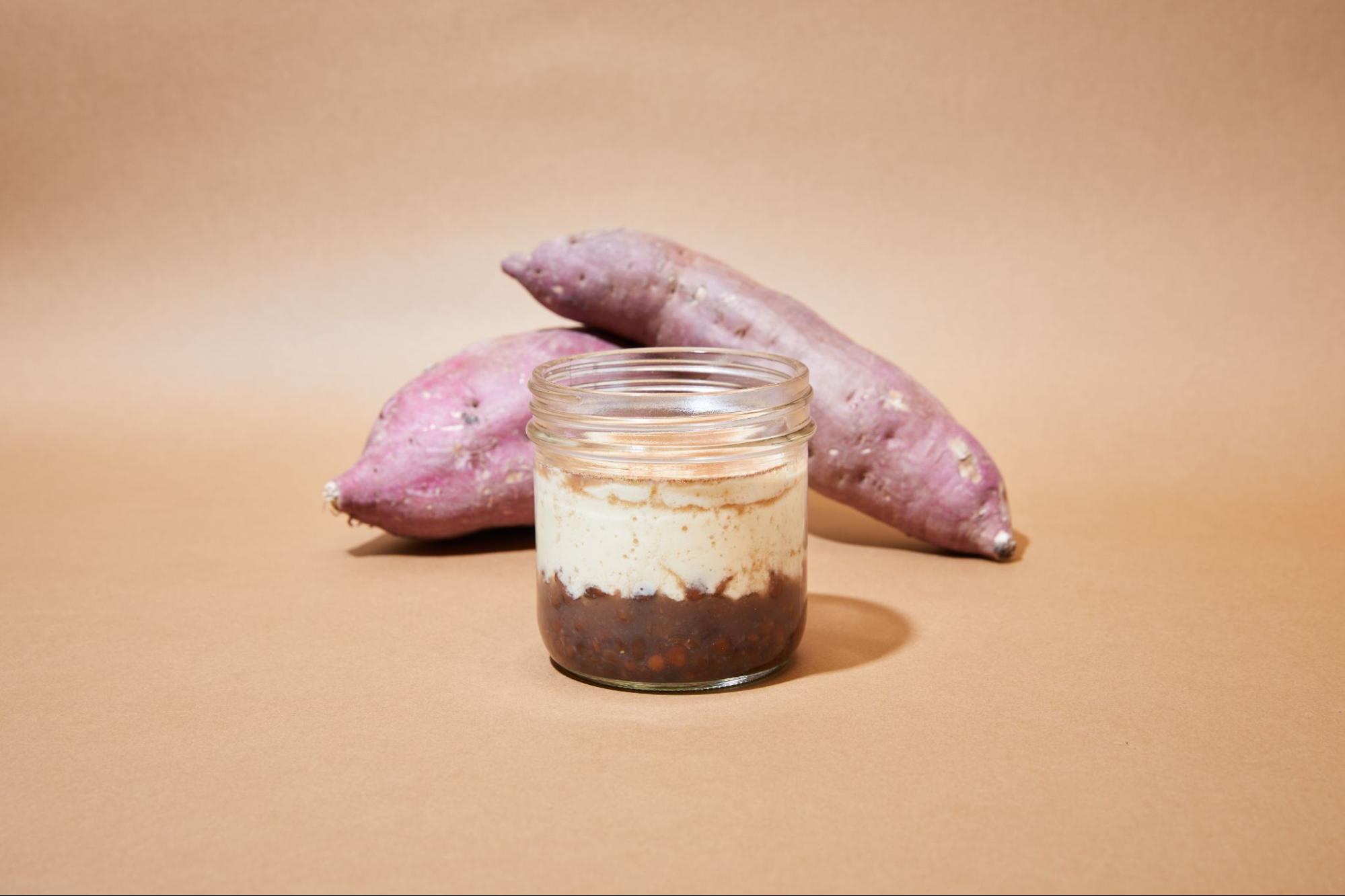 栽培期間中、農薬を使用せずに育てたサツマイモの自然な甘さと、タンパク質も豊富なレンズ豆で作ったぜんざいを組み合わせたとろける食感。スープのような濃厚さで、軽い食事代わりにも楽しめるボリューム感。仕上げのシナモンが香り立つ心まで温まるやさしい味わいです。